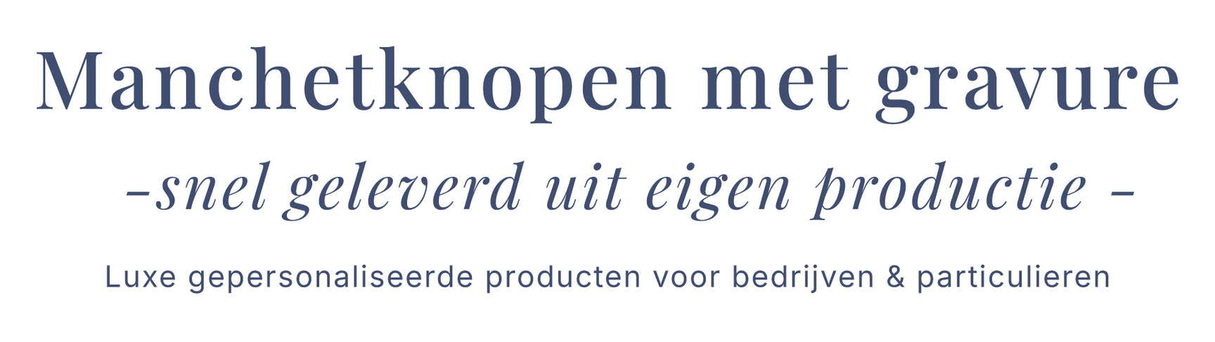 Met de nieuwste apparatuur worden manchetknopen gepersonaliseerd, manchetknopen gegraveerd en manchetknopen bedrukt. We staan voor 100% kwaliteits- en tevredenheidsgarantie. Kijk ook gerust op onze service pagina’s over bijvoorbeeld retourneren, veelgestelde vragen of inspiratiepagina’s over een geschikt cadeau voor een Student (afstuderen) of voor een Jubilaris of Zakelijk cadeau-idee.