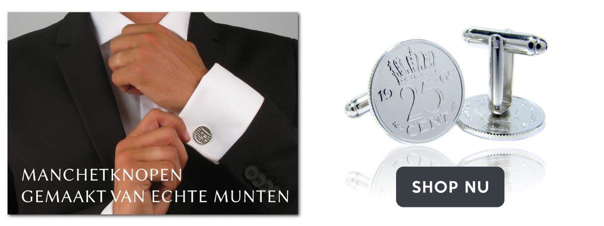 De collectie Manchetknopen hebben we verdeeld in verschillende thema’s zoals Manchetknopen beroepen, trouwen, auto en vlaggen. Maar ook de collectie Zilveren Manchetknopen en Gouden Manchetknopen hebben we overzichtelijk gerangschikt. Manchetknopen gemaakt van Munten, vindt u in categorie Munt Manchetknopen – ingedeeld naar de munten uit de volgende landen: Nederland, België, Duitsland en Engeland – uiteraard eenvoudig op jaartal gerangschikt.