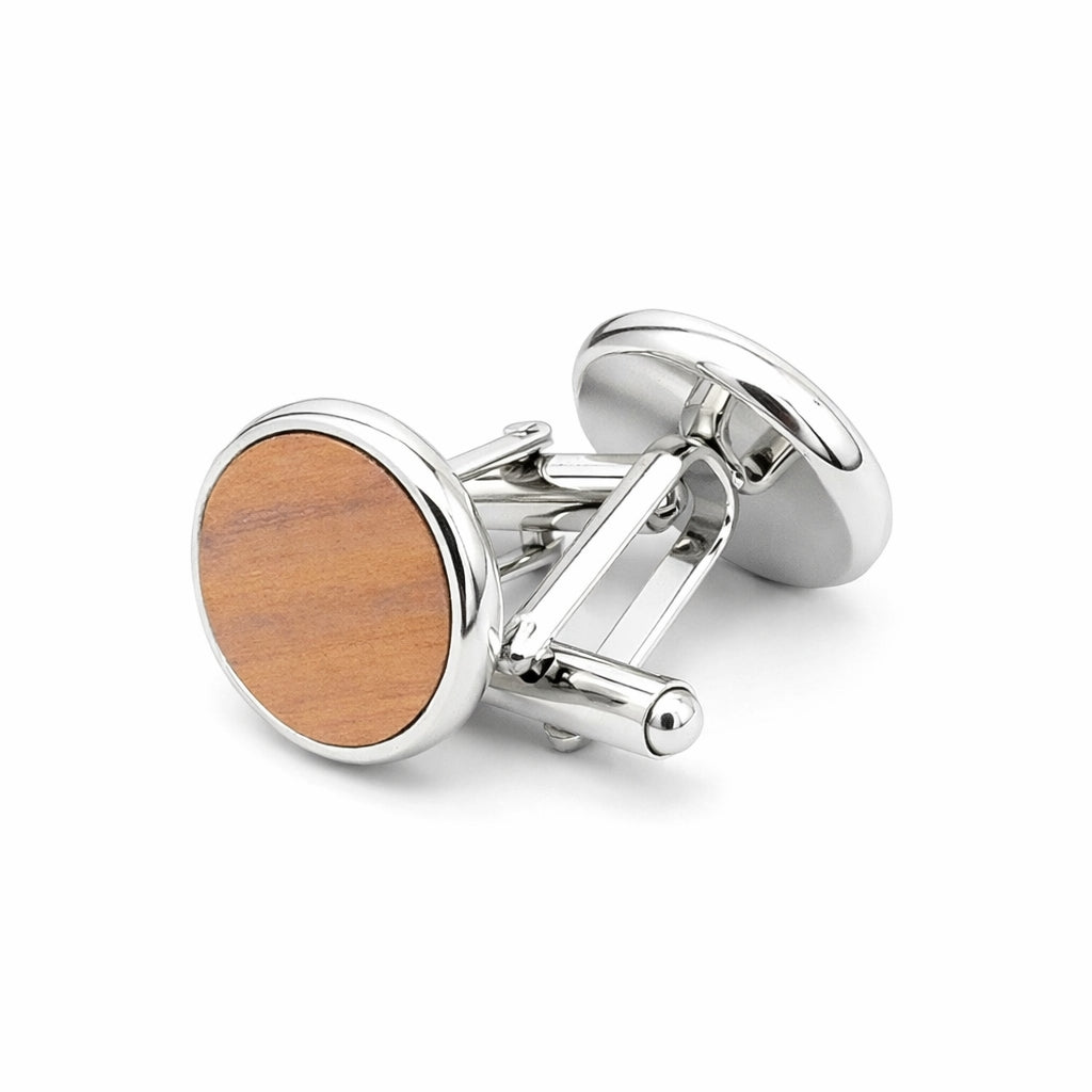 Ronde Manchetknopen met Houten Inlay – Zilverkleurig 15 mm Licht hout
