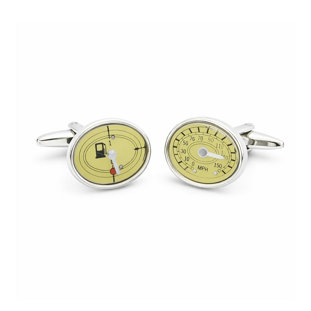 Prachtige manchetknopen voor een echte autoliefhebber. Op een van de manchetknopen staat de benzinemeter afgebeeld inclusief uiteraard een wijzer en een afbeelding van een benzinepomp. Op de andere manchetknoop staat de temperatuurmeter afgebeeld, ook deze meter is zeer gedetailleerd.