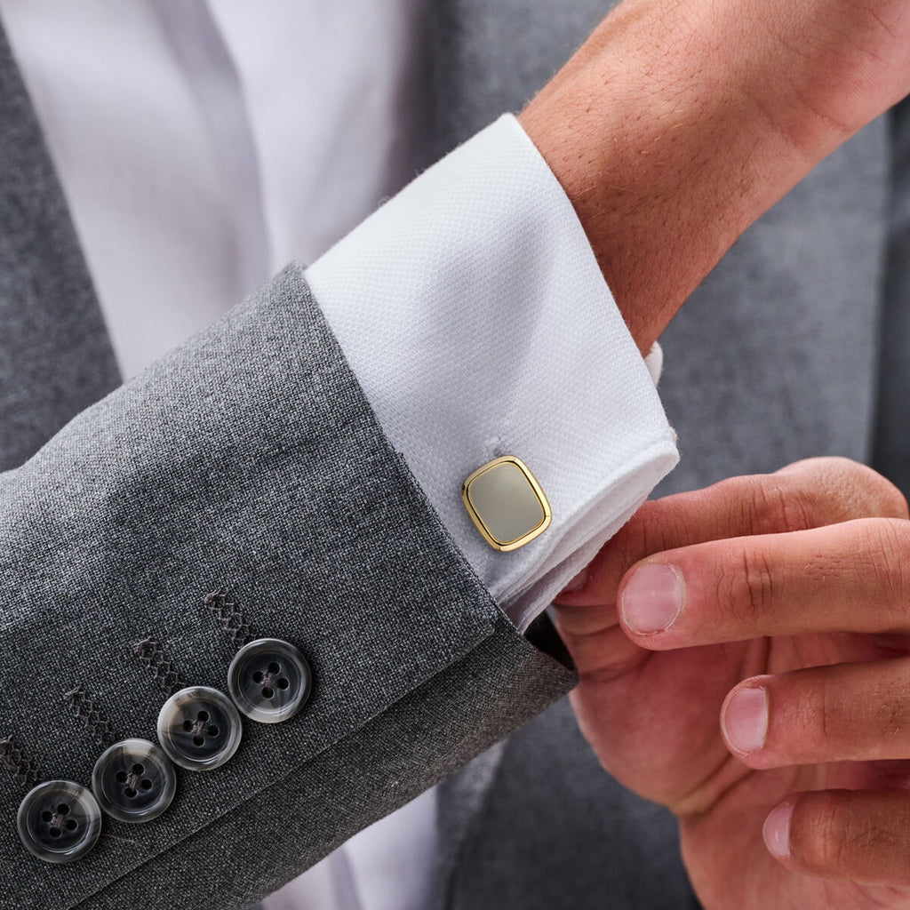 14 Karaat Geelgouden Manchetknopen - Rechthoek met Parelmoer - Formaat 16 x 14 mm