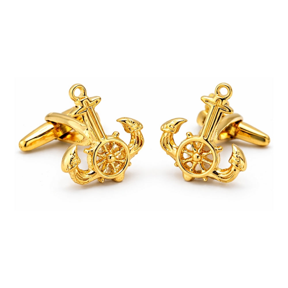 Scheepsanker en Stuurwiel zijn mooi met elkaar gecombineerd, deze goudkleurige manchetknopen zijn een prachtige kleine blikvanger in de manchetten van uw overhemd.