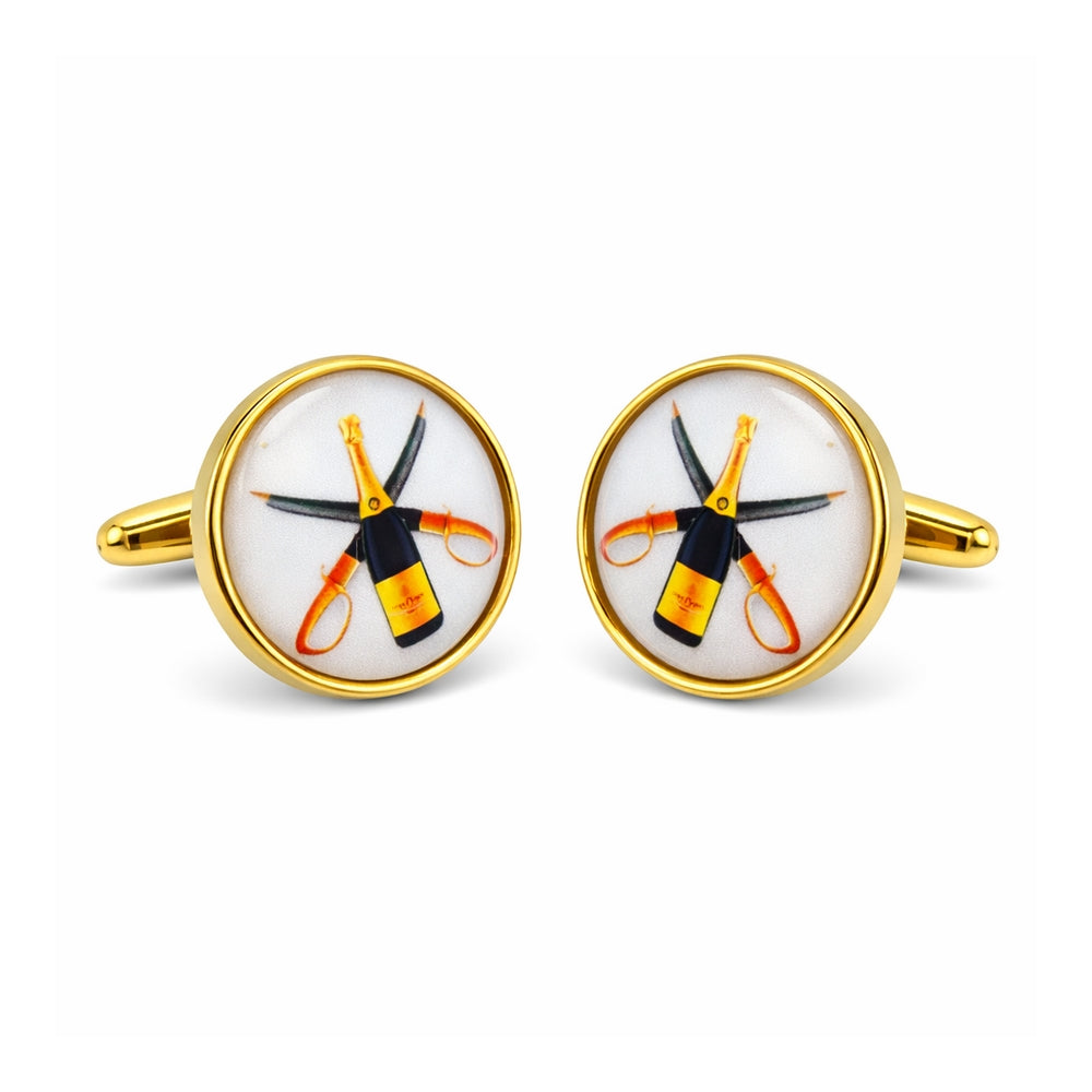 Ronde set manchetknopen, het sabreren van champagne – de sabrage - is een traditionele, enigszins ceremoniële manier om de champagnefles te openen.