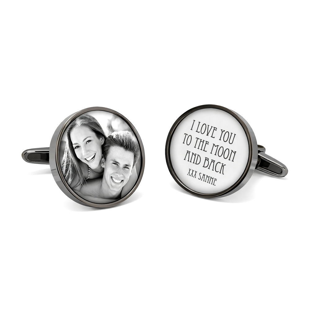 Foto Manchetknoop en een Manchetknoop met persoonlijke tekst - Mechaniek: Rond - Antracietkleurig