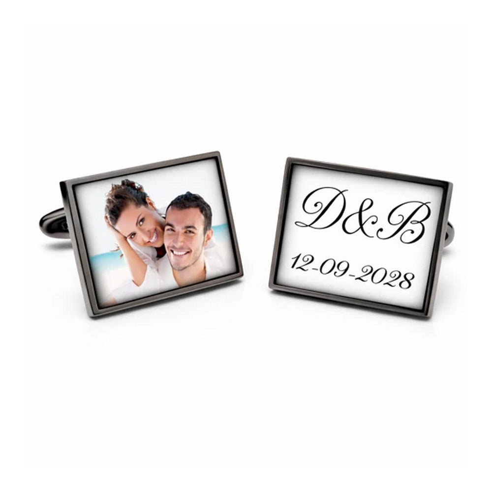 Tijdelijk niet leverbaar - Manchetknopen eigen foto en tekst - Rechthoek antraciet
