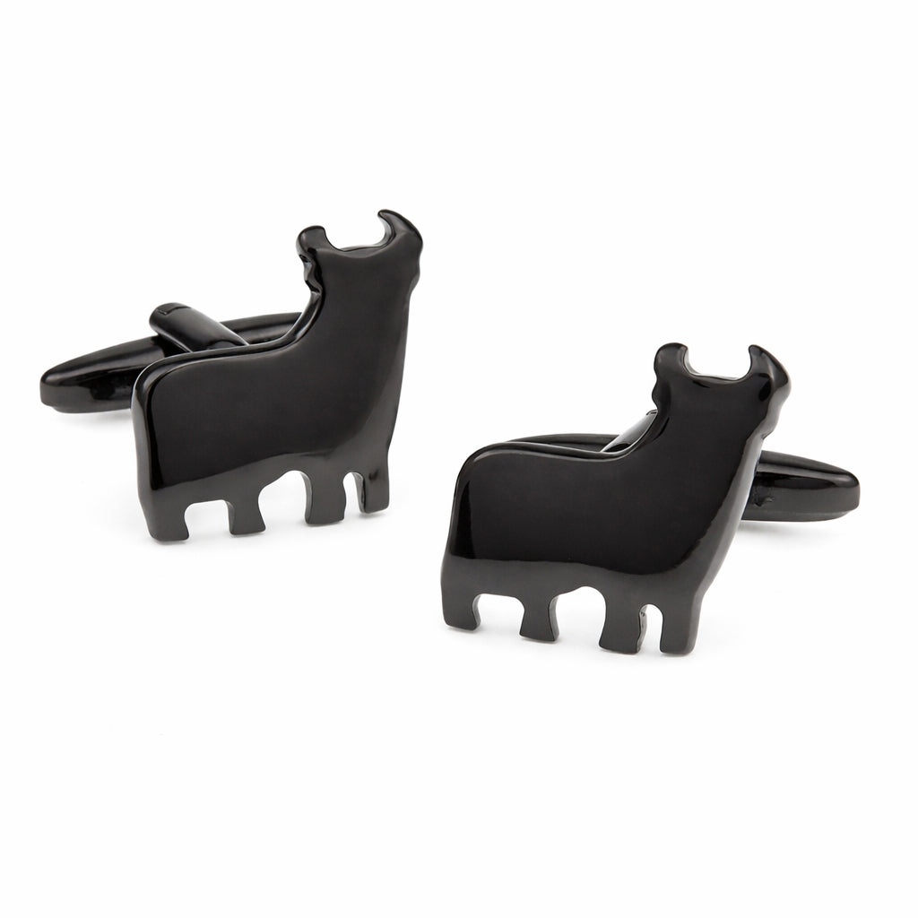 Stoere, antracietgrijze stieren als manchetknopen, Stier Manchetknopen zijn een mooi cadeau-idee voor de man die geboren is met het Sterrenbeeld Stier - circa 21 april en circa 20 mei. Maar ook een fraai en toepasselijk cadeau-idee voor een man die weet wat hij wil, die werkt in de handel.