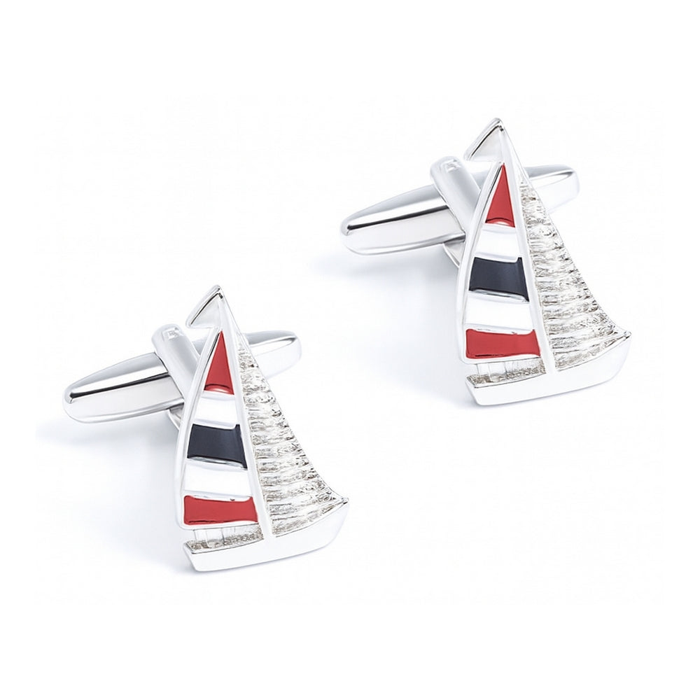 Manchetknopen – Zeilboot (Rood, Wit & Donkerblauw Emaille | Zilverkleurige Afwerking)