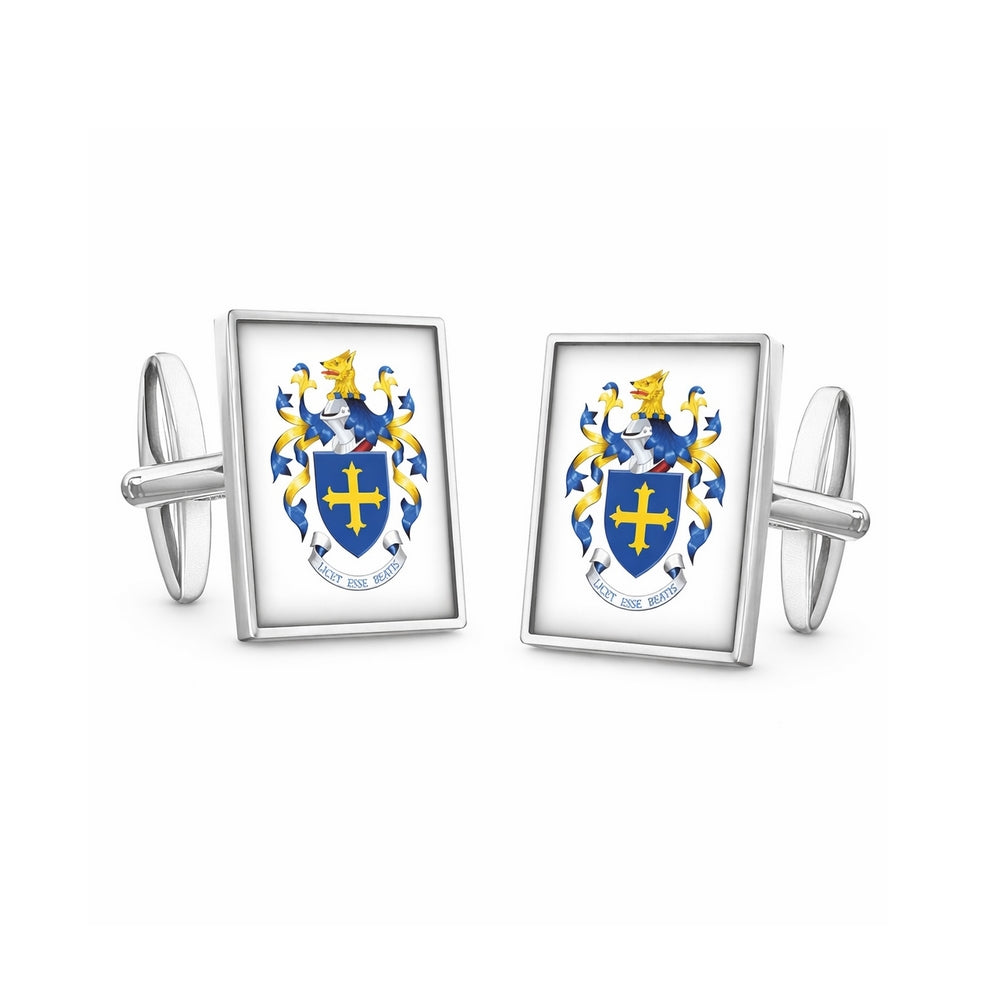 Tijdelijk niet leverbaar - Manchetknopen Rechthoek met uw eigen Familiewapen - Zilverkleurig