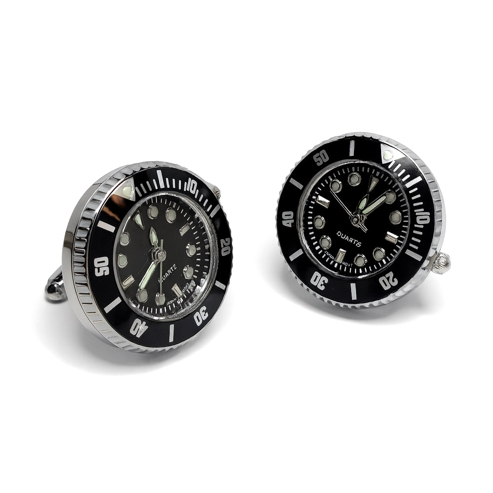 Manchetknopen met Werkend Horloge – Zilverkleurig | Zwarte Wijzerplaat | 25 mm | Day Perpetual Watch