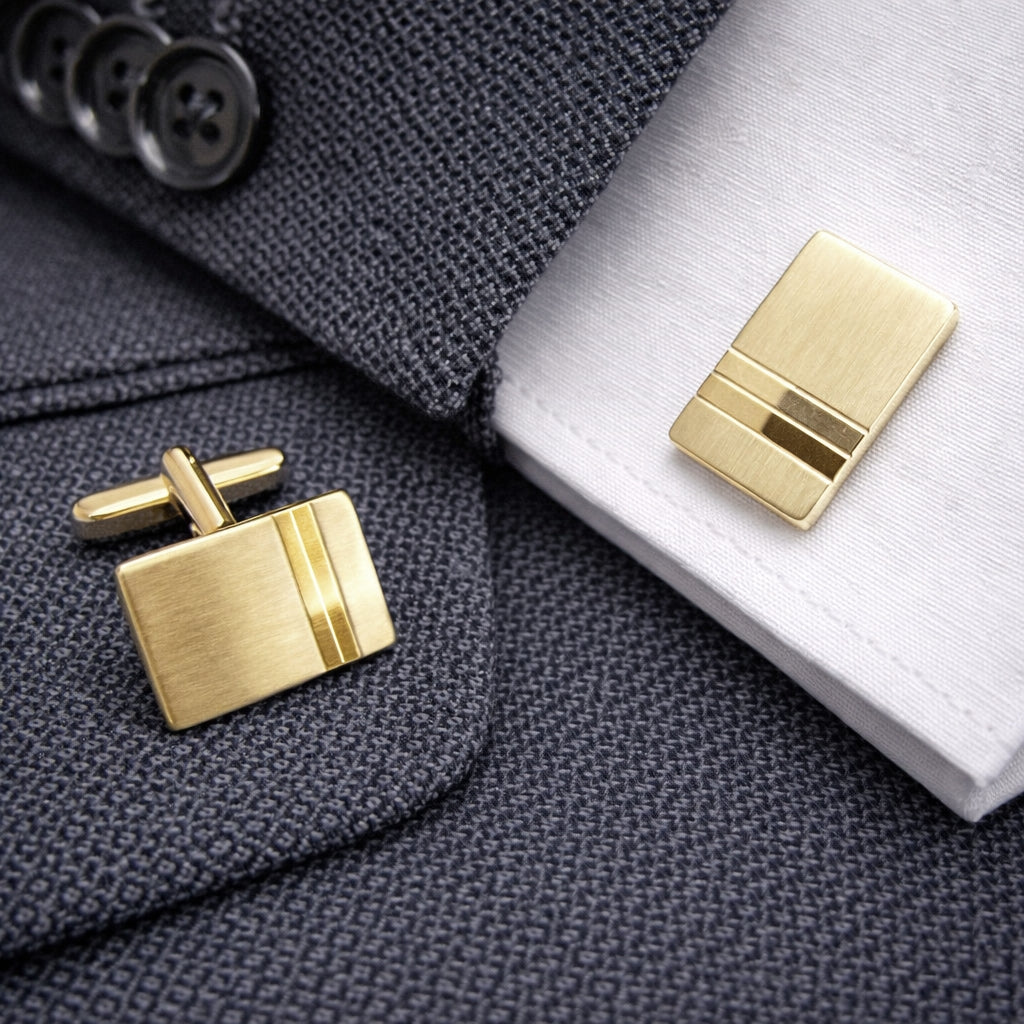 14 Karaat Geelgouden Manchetknopen - Rechthoek met staande banen