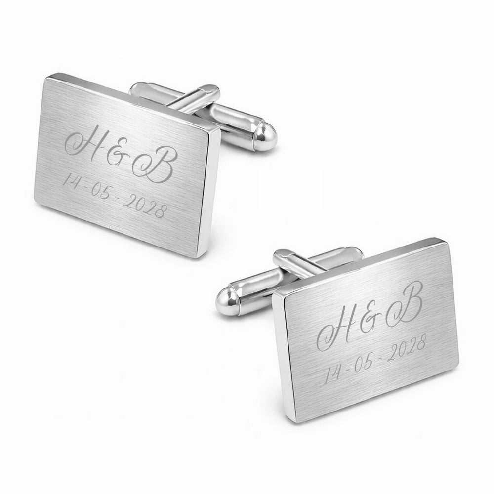 Rechthoekige Zilverkleurige Manchetknopen met Matte Afwerking en Persoonlijke Gravure