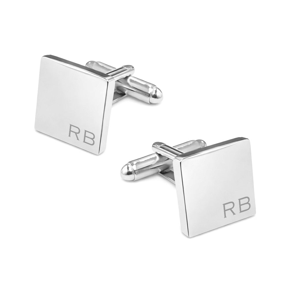 Manchetknopen Vierkant Glans met initialen in de hoeken- Zilverkleurig