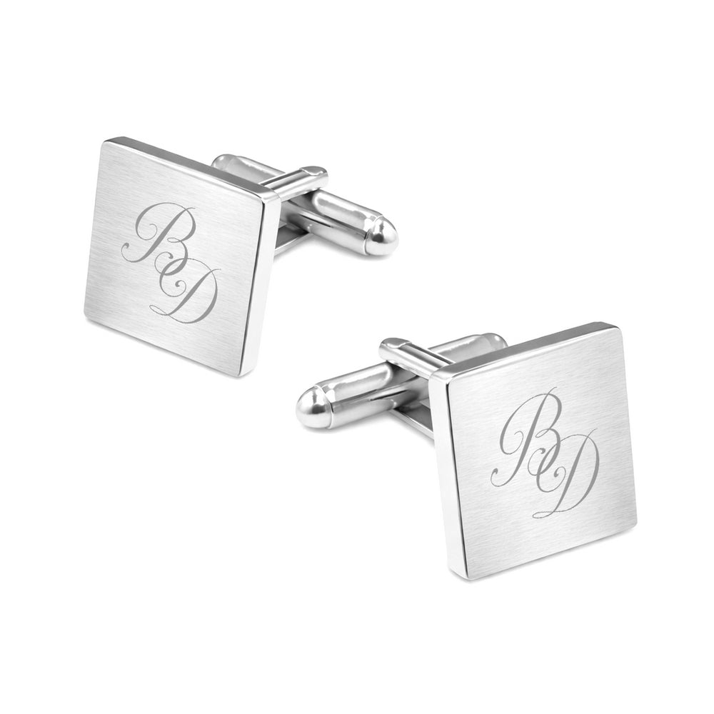 Manchetknopen Vierkant Mat met Lettergravure - Zilverkleurig