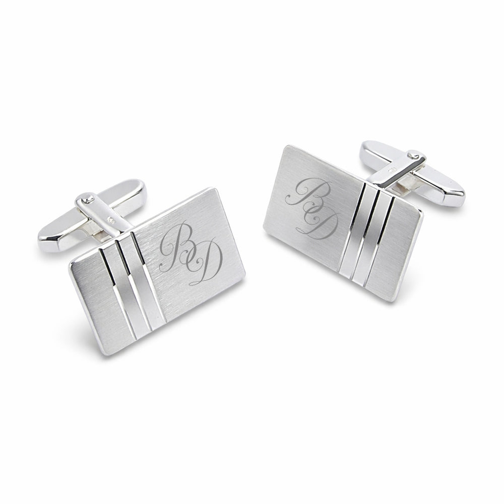 Zilveren Manchetknopen Twee banen met Lettergravure - Sterling Zilver