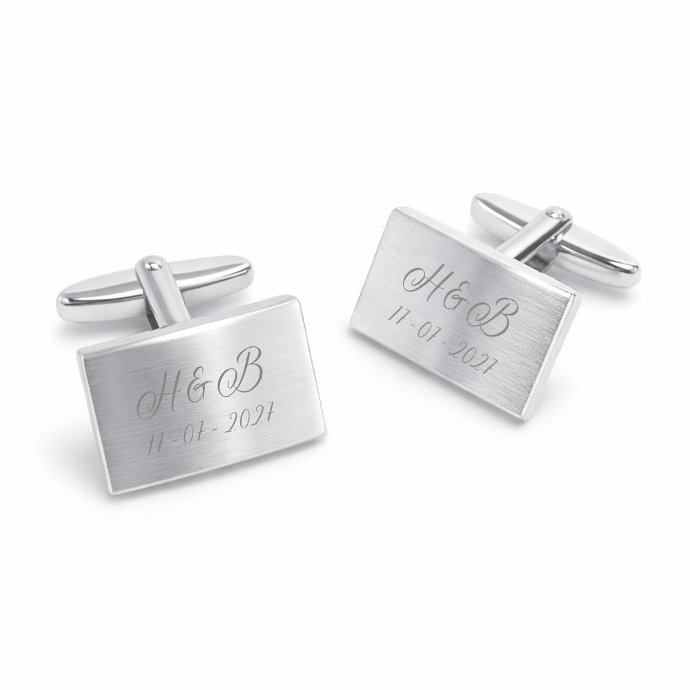 Zilveren Manchetknopen Gebolde Rechthoek met Datum en Lettergravure - Sterling Zilver
