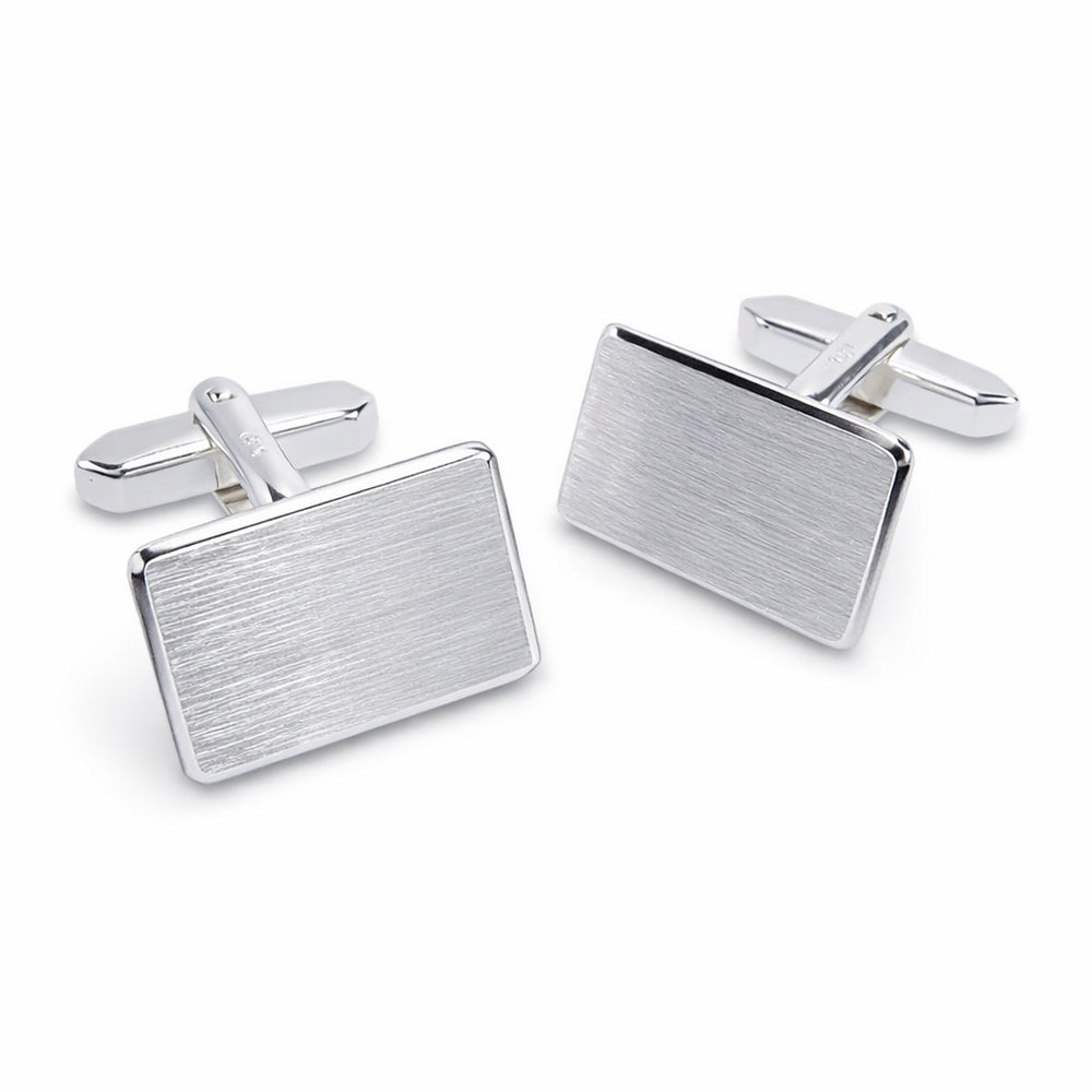 Zilveren Manchetknopen Rechthoek met Datum en Lettergravure - Sterling Zilver (gerhodineerd)