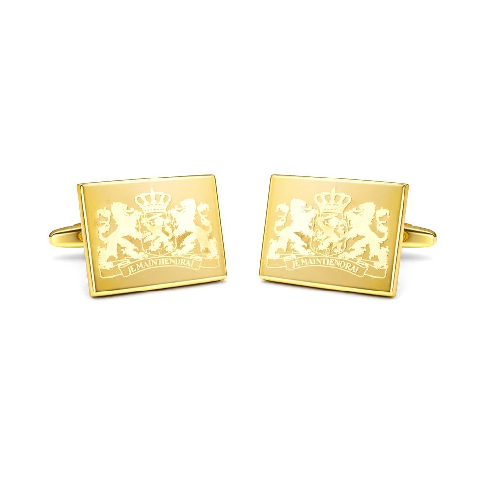 Goudkleurige Manchetknopen met gravure Wapen van Nederland