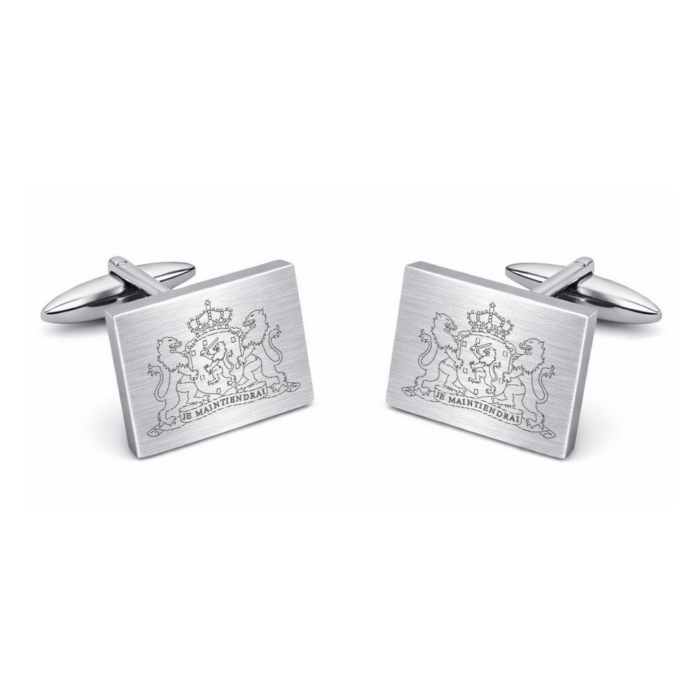 Manchetknopen Wapen van Nederland Gegraveerd - Zilverkleurig Gematteerd