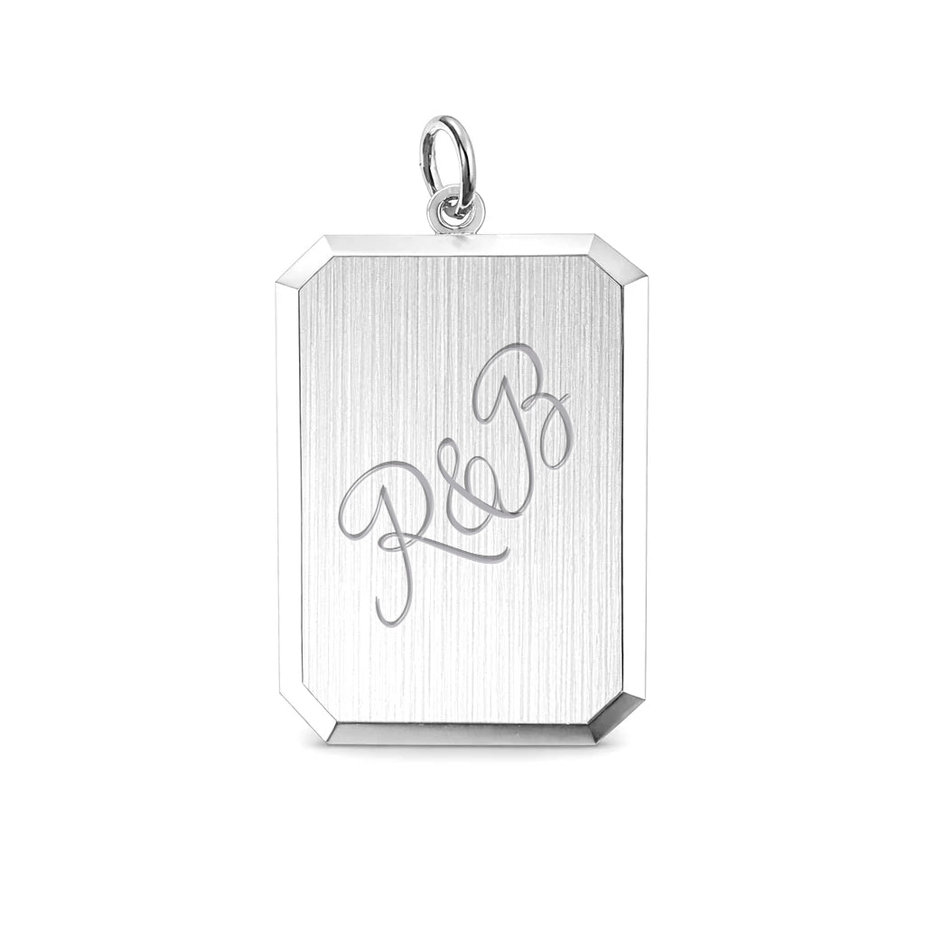 Graveerhanger Rechthoek mat gediamanteerd 18 x 14 mm 925/1000 Zilver - inclusief lettergravure