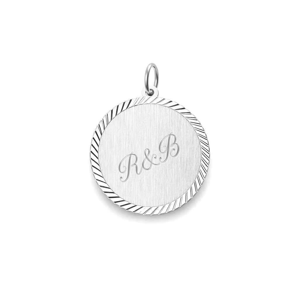 925 zilveren graveerhanger uitgevoerd met een gediamanteerde afwerking. De hanger heeft een dikte van 0.6mm.