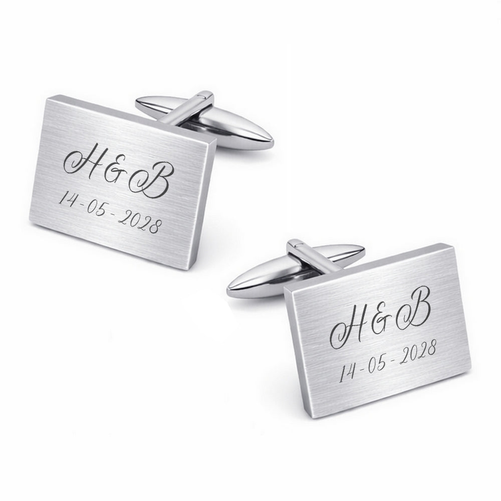 Rechthoekige Zilverkleurige Manchetknopen met Matte Afwerking en Persoonlijke Gravure