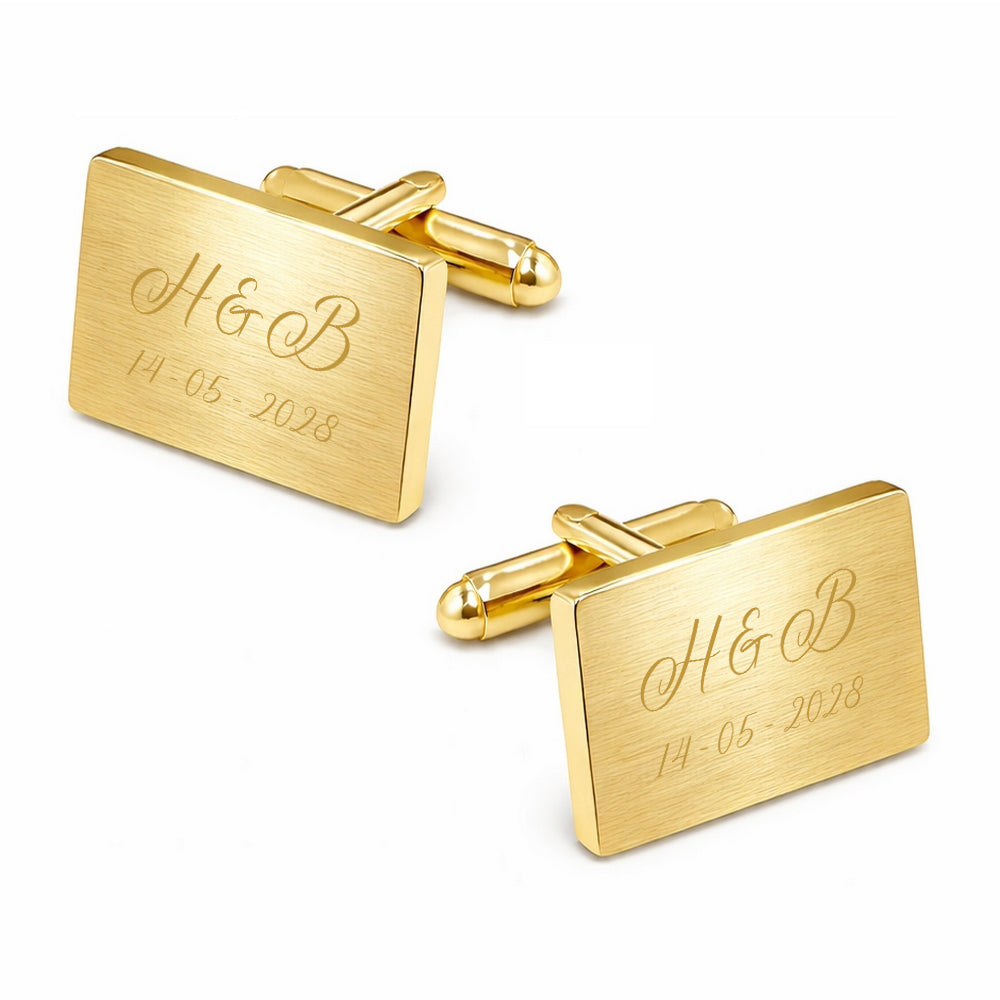 Manchetknopen Rechthoek Mat met Datum en Lettergravure - Goudkleurig