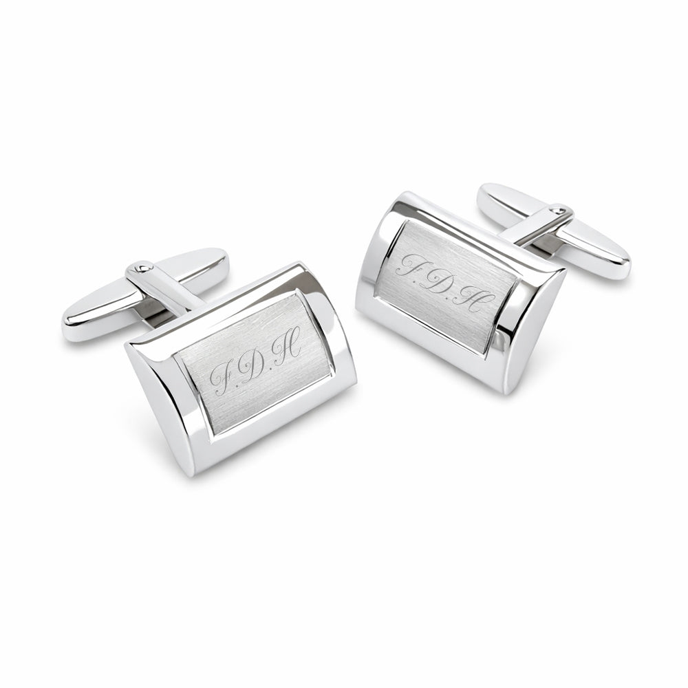Zilveren Manchetknopen Brede Rand met Lettergravure - Sterling Zilver