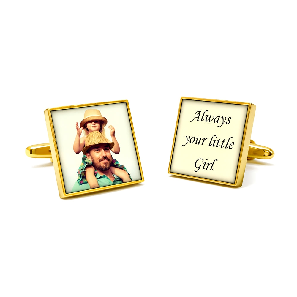 Foto Manchetknoop en een Manchetknoop met persoonlijke tekst - Mechaniek: Vierkant - Goudkleurig