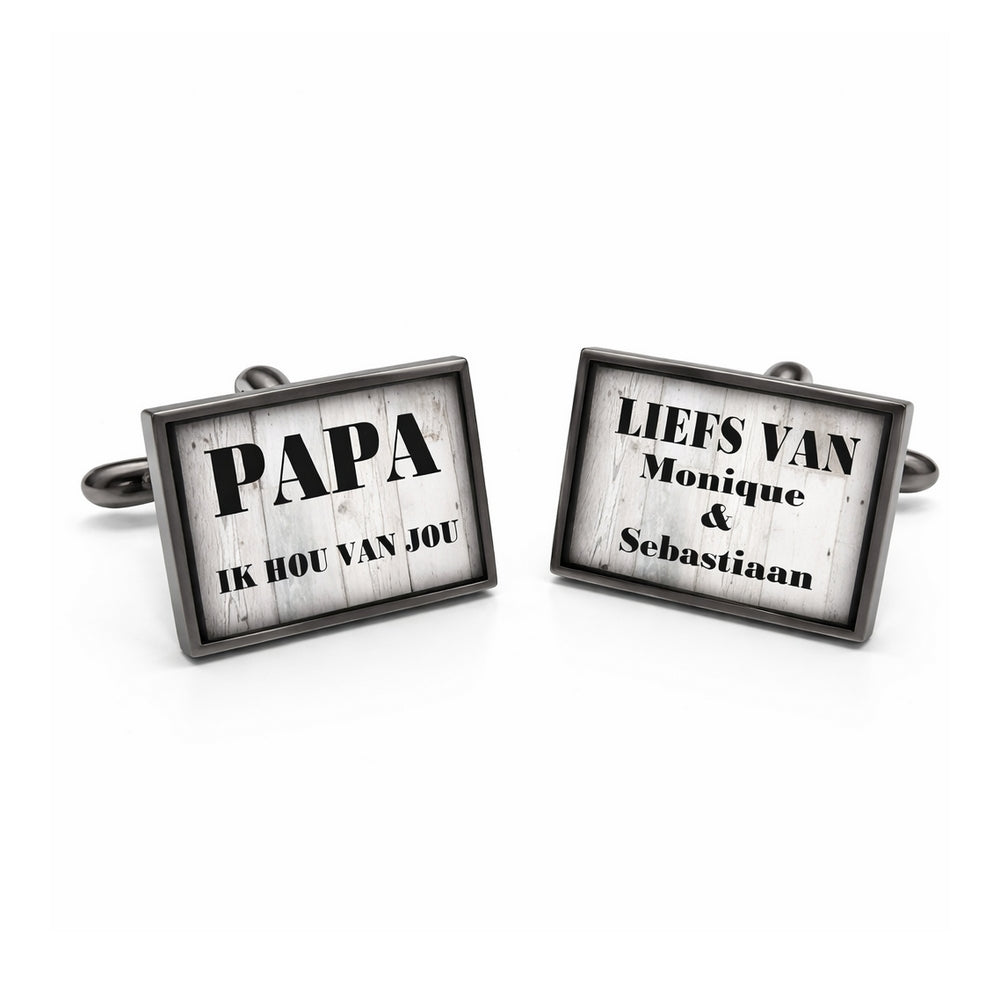 Tijdelijk niet leverbaar - Manchetknopen eigen tekst of initialen - Steigerhout achtergrond