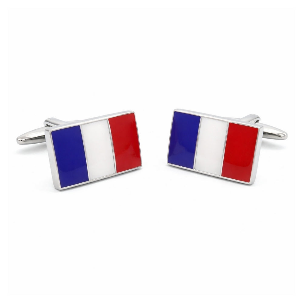 Manchetknopen met de vlag van Frankrijk zijn een passend cadeau voor de man die graag op vakantie gaat naar Frankrijk of voor de zakenman. De gebruikte kleuren zijn uiteraard exact gelijk aan de originele vlag van Frankrijk. De kleuren blauw, wit en rood worden door een dun zilverkleurig randje gescheiden.