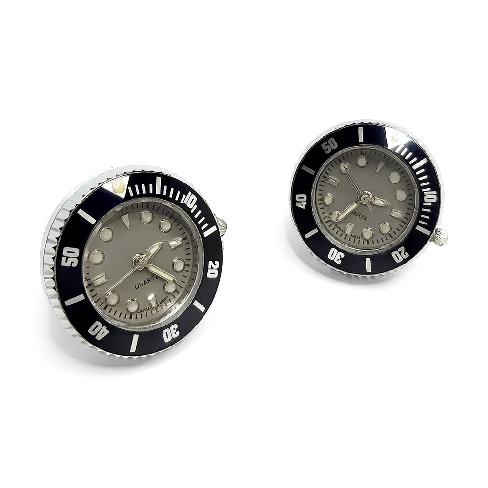 Manchetknopen met Echt Werkend Horloge - Zwart met Grijze Wijzerplaat Quartz (Ø 2,5 cm)