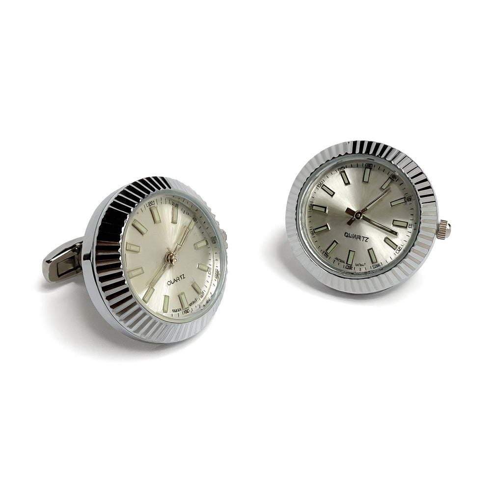 Manchetknopen Horloge Zilverkleurig – Wit/Crème Wijzerplaat