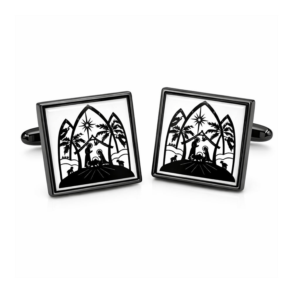 Manchetknopen Kerststal Zwart-Wit