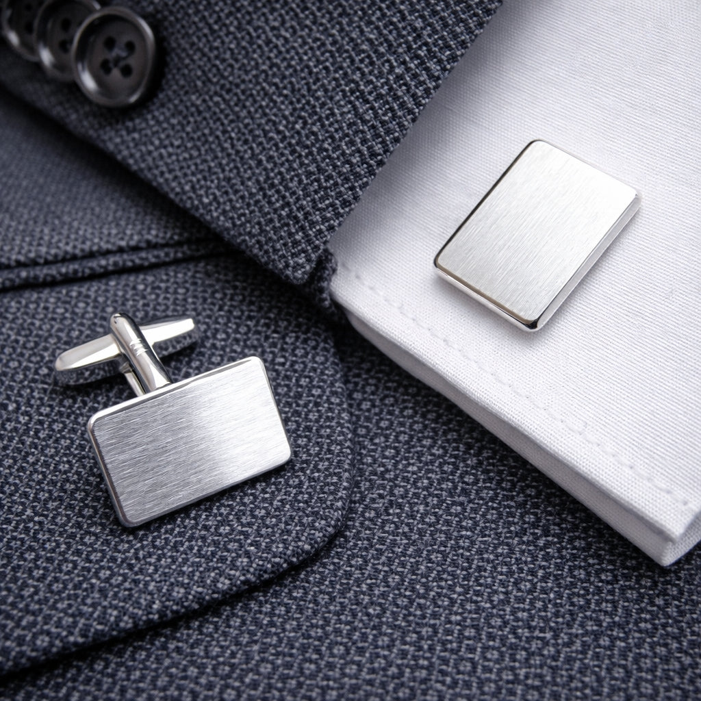 Opvallende rechthoekige vorm, waarbij het aangezicht van de manchetknopen is gematteerd, de randen zijn glanzend afgewerkte (facet rand). Uiteraard voorzien van een Nederlands Zilverkeurmerk.