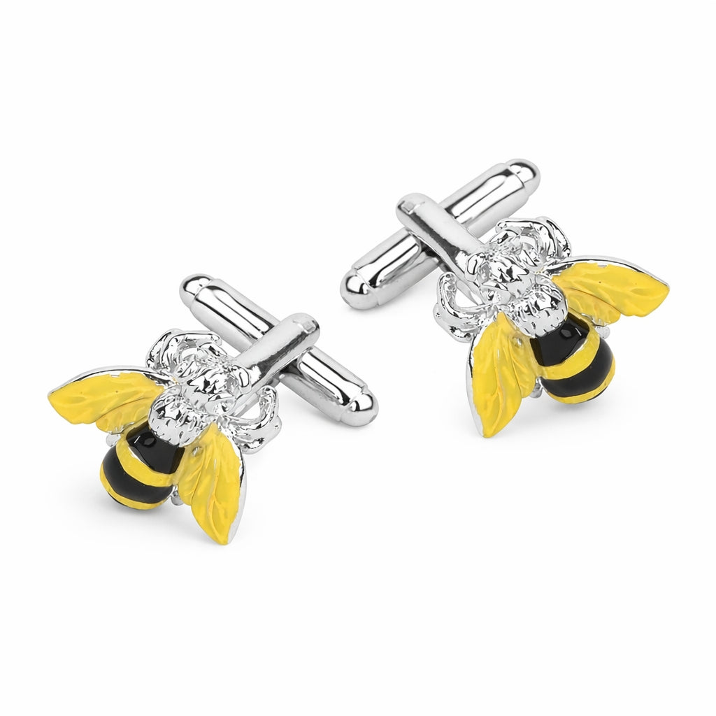 Draag deze manchetknopen Bij in de manchetten van uw overhemd en we weten zeker dat er aan aandacht geen gebrek zal zijn! De twee bijen zien er levensecht uit, uiteraard voorzien van vleugels en een zilverkleurige kop - het zwarte lijf met de gele strepen geven een extra levendige uitstraling aan deze set Bij Manchetknopen. U ziet de poten van de bij en zijn ogen zijn zwart - kortom tot in detail uitgewerkt.