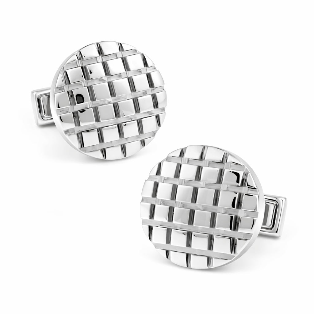 Ronde set manchetknopen, zilverkleurig, met een opvallend reliëf aan de voorzijde! De diepe lijnen aan de voorzijde zijn dus goed voelbaar én zichtbaar. Hoogglanzend zilverkleurige manchetknopen met een opvallend mechaniek aan de achterzijde. Dit klapmechaniek is eenvoudig door de manchetten van uw mouwen te steken en dan 'klapt' u het blokje aan de achterzijde weer terug zodat de manchetknopen veilig in de manchetten blijven zitten.