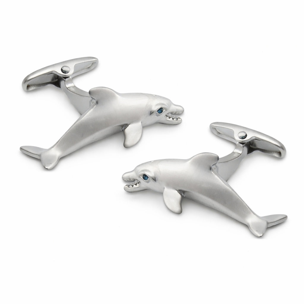 Super mooi van afwerking, perfect glanzend zilverkleurig, net als de gladde, glanzende huid van een Dolfijn. Mooie set manchetknopen voor de man die houdt van de zee en vrijheid. | Direct leverbaar | Cadeauverpakking |